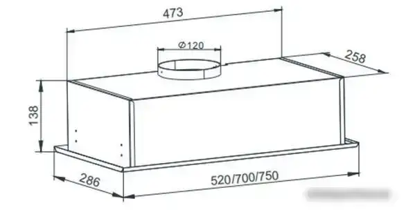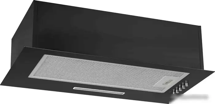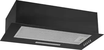 конструкция скрытая, монтаж для встраивания, ширина 52 см, управление механическое/кнопочное, производительность мотора 850 м×/ч, цвет черный