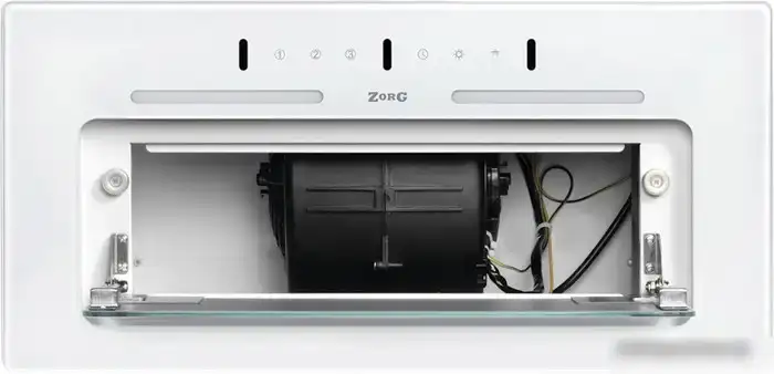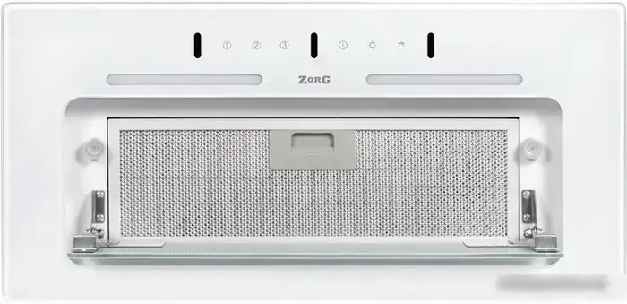 конструкция скрытая, монтаж для встраивания, ширина 59.6 см, управление сенсорное/жестами, производительность мотора 1200 м×/ч, цвет белый