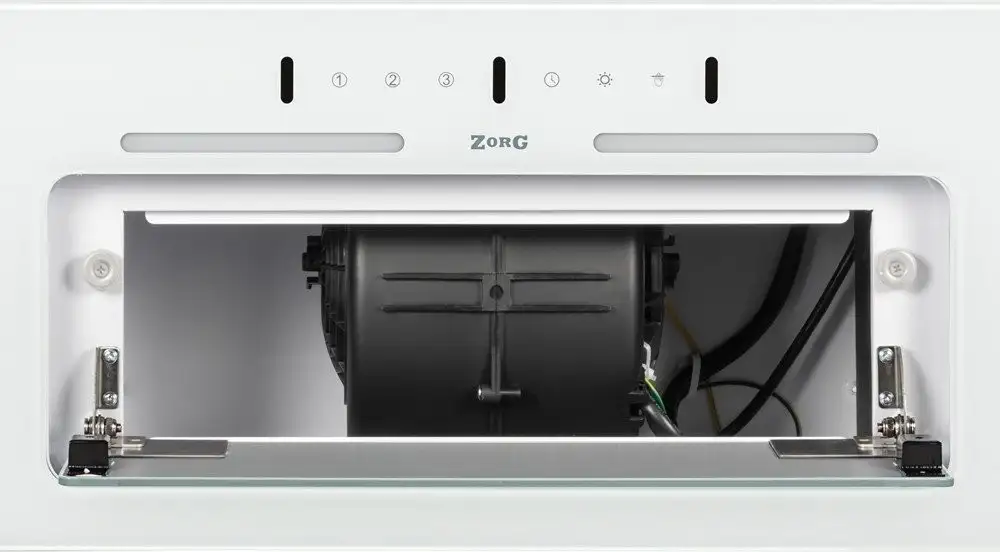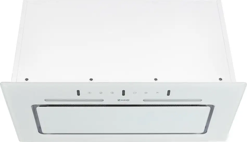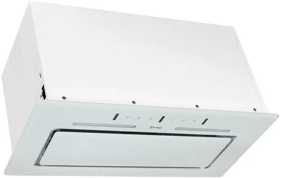 конструкция скрытая, монтаж для встраивания, ширина 59.8 см, управление сенсорное/жестами, производительность мотора 1080 м×/ч, цвет белый