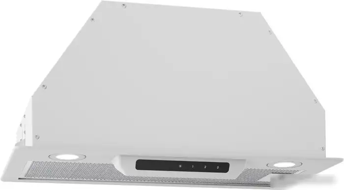 конструкция скрытая, монтаж для встраивания, ширина 52 см, управление сенсорное, производительность мотора 850 м×/ч, цвет белый