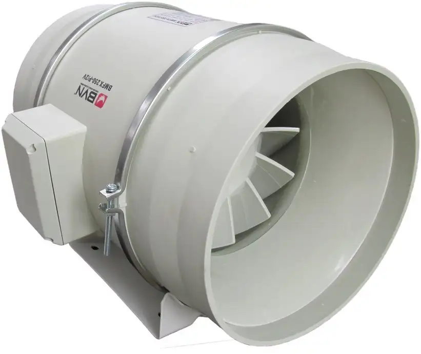 Осевой и радиальный вентилятор Bahcivan BMFX 200/2V идеально подходит для установки внутри каналов с диаметром 20,8 см. Он способен прогонять до 840 кубометров воздуха в час, обеспечивая свежий воздух в жилых, промышленных и коммерческих помещениях. Вентилятор работает тихо — уровень шума составляет всего 33 дБ, и его легко регулировать с помощью ступенчатой системы скоростей. В устройстве предусмотрена возможность регулировки скорости, что помогает адаптировать работу под нужды пользователя. Вентилятор выполнен из прочного пластика и защищён по стандарту IP44, что позволяет использовать его в влажных условиях, например, в ванной или туалете. Он легко монтируется внутри каналов, а съемная внешняя панель облегчает обслуживание и чистку. Устройство работает при частоте вращения 2550 об/мин, а его размеры — шириной 20,8 см и высотой 22,7 см, масса составляет 4,9 кг. Такой вентилятор подходит для бытового, промышленного и коммерческого использования, обеспечивая эффективную вентиляцию без лишнего шума.