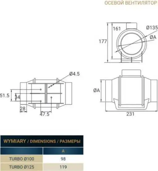 Осевой вентилятор Dospel Turbo 100