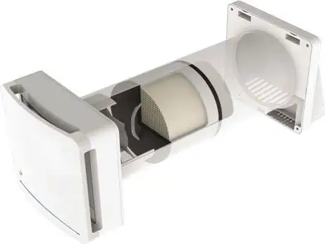 накладной проветриватель с рекуперацией вентилятор, настенная установка, диаметр: 16 см, производительность: 60 куб.м/ч, 8.9 Вт, отдельная кнопка или выключатель света, белый