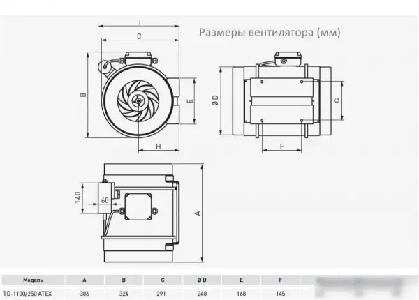 Осевой вентилятор Soler&Palau TD-1100/250 EXEIIT3