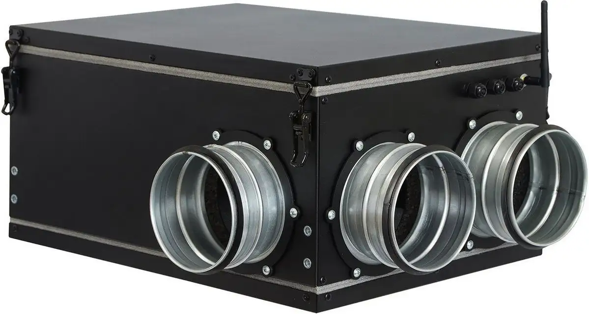 накладной радиальный (центробежный) вентилятор, внутриканальная установка, производительность: 630 куб.м/ч, 90 Вт, датчик влажности + управление с помощью смартфона, черный