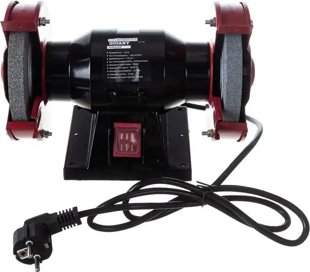 Заточной станок Gigant GP-200 предназначен для точной заточки ножей и инструментов. Он работает от сетьи с мощностью 200 Вт и обеспечивает быстрое вращение диска — до 2950 об/мин, что помогает быстро улучшить режущие свойства инструмента. Диаметр диска составляет 125 мм, а толщина — 16 мм, что подходит для большинства стандартных ножей и лезвий. Устройство подключается к однофазной сети и достаточно компактное — вес всего 4,1 кг. Благодаря простоте конструкции, станок легко использовать дома или на мастерской. Он не поддерживает влажную заточку, подсветку или подключение пылесоса, что упрощает его дизайн. Приспособлен к работе с дисками с посадочным диаметром 12,7 мм, что обеспечивает стабильность при работе. Надежно и удобно, этот станок помогает быстро восстановить остроту ножей и инструментов без лишних усилий.