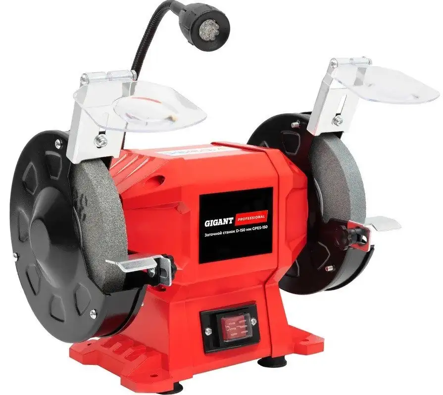 Заточный станок Gigant GPES-150 подходит для точной заточки режущих инструментов и ножей. Он работает от сети и имеет мощность 300 Вт, что обеспечивает стабильную работу. Диаметр диска составляет 150 мм, а его толщина — 20 мм, что позволяет обрабатывать разные виды инструментов. Скорость вращения холостого хода достигает 2950 об/мин, что быстро и эффективно затачивает режущие кромки. У станка есть подсветка рабочей зоны, которая помогает лучше видеть процесс заточки. Устройство поставляется с двумя абразивными кругами и защитными экранами, обеспечивая безопасность и комфорт работы. Упор и переходные втулки позволяют точно настроить процесс и увеличить точность заточки. Вес станка — 7.1 кг, он компактный и легко переносится. Этот станок подойдет как для профессиональных мастерских, так и для домашних условий.