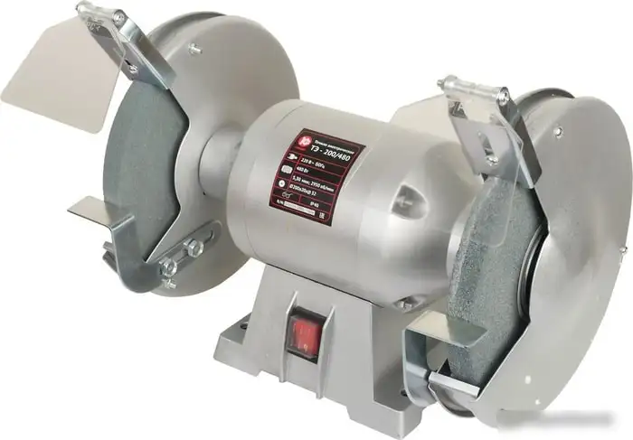 Заточный станок Калибр ТЭ-200/480 — универсальное устройство для заточки различных инструментов. Он оснащен двигателем мощностью 480 Вт и позволяет достигать скорости вращения до 2950 об/мин, что обеспечивает быструю и качественную работу. Диаметр диска составляет 200 мм, а его толщина — 20 мм, что удобно для выполнения разных задач. Вес станка — 11,6 кг, он устойчив и легко переносится. Устройство не поддерживает влажную заточку и подсветку рабочей зоны, поэтому подходит для простых условий работы. Благодаря однофазному электропитанию станок легко подключить к обычной электросети.