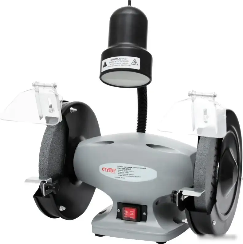 Заточный станок Ставр СЗЭ-200/450П — универсальный инструмент с мощностью 450 Вт, который удобно использовать дома или в мастерской. У него есть подсветка рабочей зоны, что помогает точнее выполнять работы. Диаметр диска составляет 200 мм, а его толщина — 20 мм, что позволяет затачивать различные инструменты. Частота вращения достигает 2950 об/мин, благодаря чему заточка проходит быстро и качественно. В комплект входят два точильных круга, защитные экраны, рабочие площадки и адаптеры, что дает возможность сразу начать работу. Вес станка около 10.7 кг, он достаточно легкий для переноски и хранения. Этот заточный станок — надежный помощник для точной и быстрой заточки инструментов.