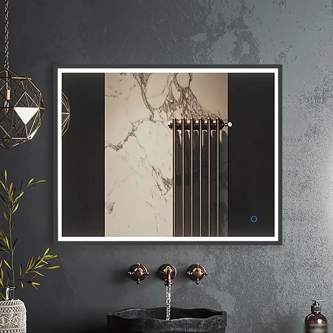Зеркало Roxen Sigma 510210-80GM имеет прямоугольную форму и размеры 80x70 см, что делает его удобным для использования в любой комнате. Оно изготовлено из стекла и металла в тёмно-сером цвете, что легко вписывается в современный интерьер. Зеркало оснащено встроенной боковой и фронтальной подсветкой, которая помогает лучше разглядеть детали. Благодаря сенсорному управлению и регулировке яркости и температуры освещения, использование становится очень комфортным. Устройство легко устанавливается на стену и имеет вес 8,3 кг. В комплект входит вилка, а также зеркало отличается универсальностью в положении и наличии подсветки, что значительно повышает его функциональность.